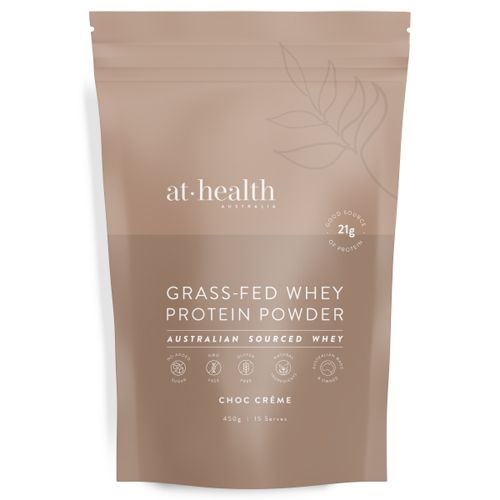 Fuel your body with At Health's new Australian Grass-Fed Whey Protein Concentrate — sourced from pasture-raised cows in Victoria, Australia. This premium, single-origin whey protein delivers a complete protein profile, naturally rich in BCAAs to support lean muscle growth, muscle and tissue repair, and overall strength.