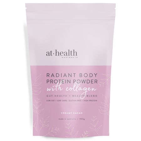 Combining Organic Pea Protein and Collagen with smooth chocolate tones, our all-natural Radiant Body Protein Powder with Collagen helps to nourish skin, hair and nails, support healthy joints while promoting gut health, lean muscle development and weight management.