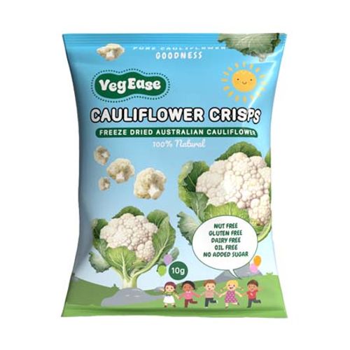 VegEase Cauliflower Crisps are freeze dried NOT fried made in Australia from Australian ingredients. This pouch is packed with essential nutrients, fibre and antioxidants. Cauliflower is considered a superfood because of its nutrient-rich content. It is high in fiber, minerals, vitamins B and C and carotenoids and glucosinolates.