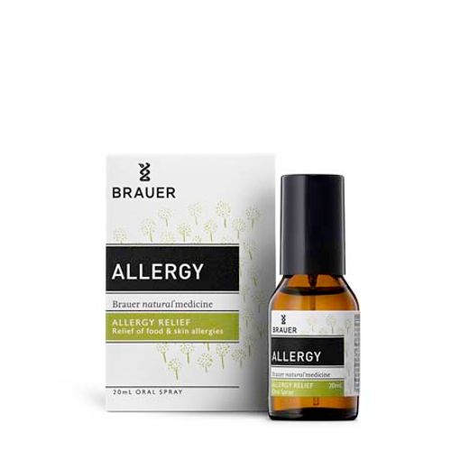 Brauer's Allergy Oral Spray contains ingredients traditionally used in Homeopathic medicine to reduce symptoms of seasonal allergies, food intolerance, and relieve skin irritation.