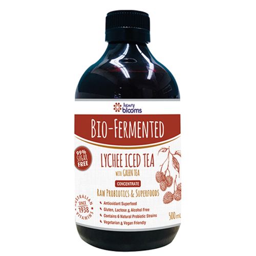 Henry Blooms Bio-Fermented Lychee Iced Tea with Green Tea works to support a happy and healthy gut for everyday wellbeing and vitality, while also being a healthy everyday alternative to regular iced tea.