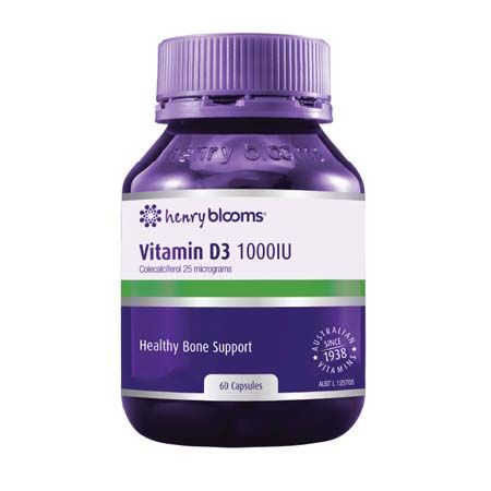 Henry Blooms Vitamin D3 1000IU is a convenient one-a-day capsule providing 25 micrograms of Colecalciferol, an identical form of Vitamin D produced in the body.