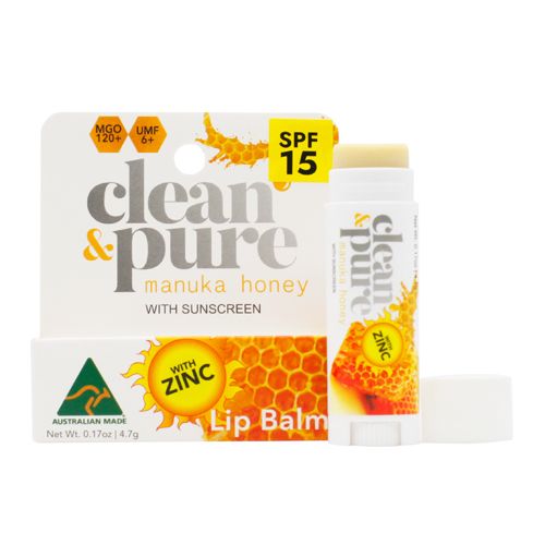 Clean & Pure's most popular Manuka Honey Lip Balm now comes with natural SPF15 Zinc Oxide for sun protection; natural protection and healing in one balm. Proudly made in Australia using all natural ingredients.