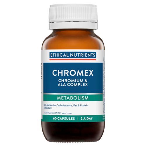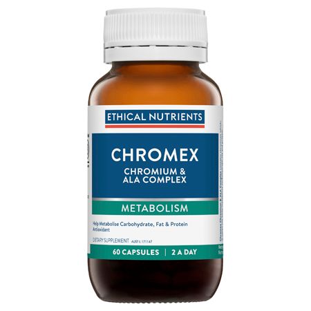 Ethical Nutrients Chromex Chromium & ALA Complex helps metabolise carbohydrate, fat & protein.