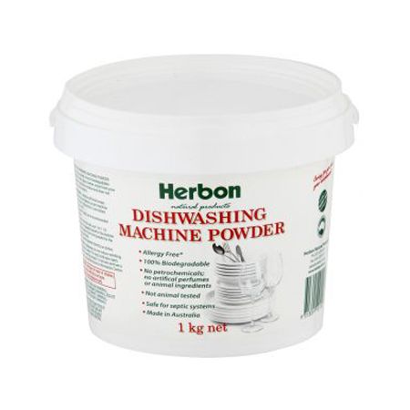 Herbon Dishwashing Machine Powder 1kg can get you better results from your dishwasher without chlorine bleaches. Entirely safe and biodegradable, no harmful residue left. Leaves dishes sparkling clean and the ozone layer does not suffer either.