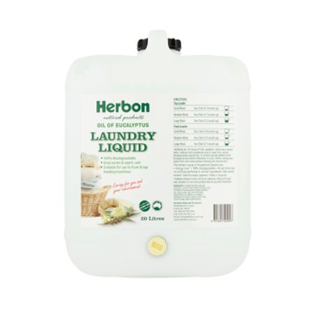 Herbon Laundry Liquid 20Lt contains natural biodegradable ingredients as well as double distilled oil of eucalyptus, the well known Australian essential oil used to absorb odours, so the wash comes out smelling fresh and clean. It is a real alternative to petrochemical based laundry liquids.