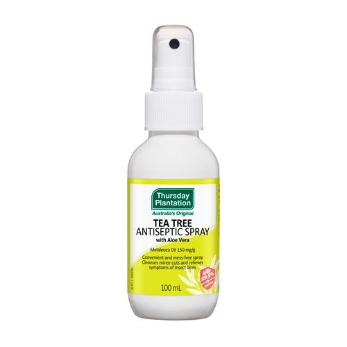 A convenient spray with the antibacterial and antimicrobial power of 100% pure Australia-grown Tea Tree Oil. This spray cleanses minor cuts and relieves symptoms of insect bites Cleaning: Kills 99.9% of germs.
