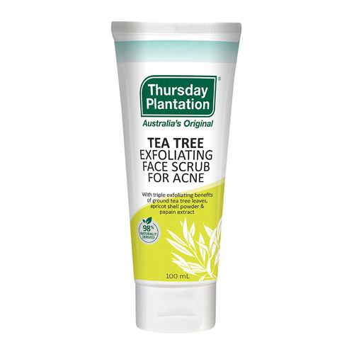 Water, Coco-Betaine, Decyl glucoside, Glycerin, Glyceryl stearate, Cetyl Alcohol, Xanthan Gum, Glyceryl Caprylate, Melaleuca Alternifolia (Tea Tree) Leaf Oil, Prunus Armeniaca (Apricot) Shell Powder, Phenoxyethanol, Hydroxyacetophenone, Melaleuca Alternifolia (Tea Tree) Leaf Powder, Citric Acid, Aloe Barbadensis (Aloe Vera) Leaf Juice, Pyrus Malus (Apple) Fruit Extract, Vaccinium Macrocarpon (Cranberry) Fruit Extract, Papain. Contains Limonene.