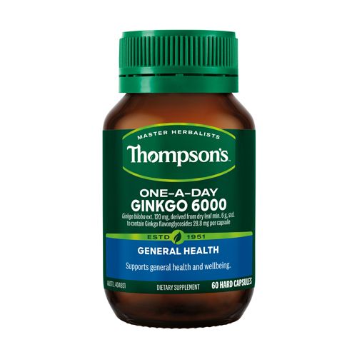 Thompson's One-A-Day Ginkgo 6000 is formulated for convenience with a one a day dose. It contains ginkgo, a source of antioxidants to help reduce free radical damage to body cells. It is also formulated for use in elderly individuals to: