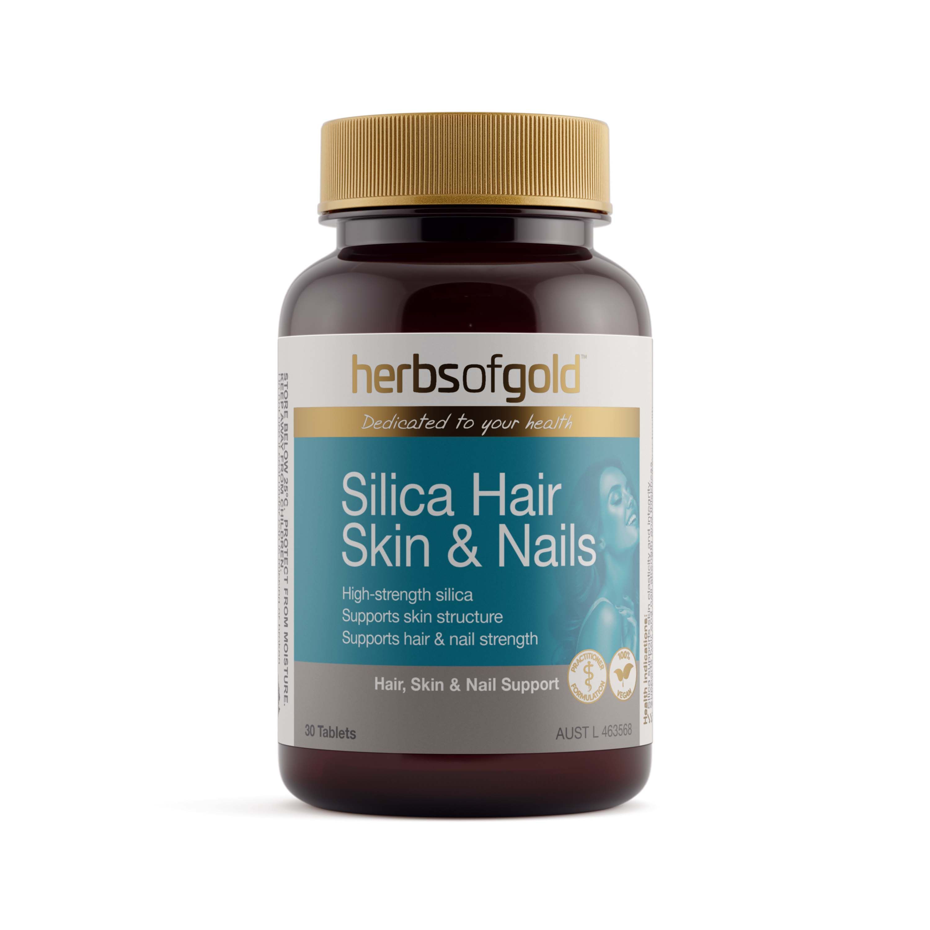 Herbs of Gold Silica Hair Skin & Nails is a high-strength, comprehensive formula that supports the health of connective tissue including hair, skin and nails.