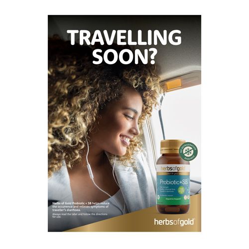POS A2 HEADER CARD PROBIOTIC + SB - TRAVELLING SOON?