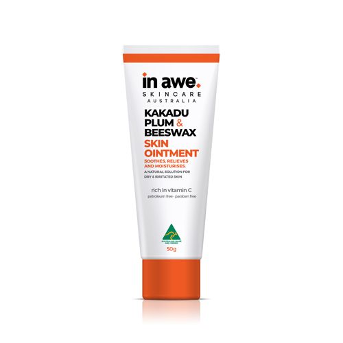 The In Awe 50g Kakadu Plum & Beeswax Skin Ointment gives your skin the appearance of a natural glow and works as a daily moisturiser. This formula is linked to numerous health benefits, anti-inflammatory, antimicrobial, and prebiotic effects.