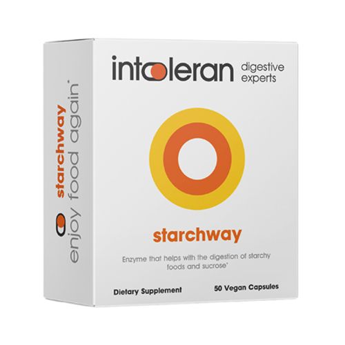 Starchway is helpful for surcrose and/or starch intolerance. It is also helpful for those with CSID, and has shown activity for maltose intolerance. It is taken at the time of the meal or drink, and contains the enzymes Invertase and Glucoamylase.