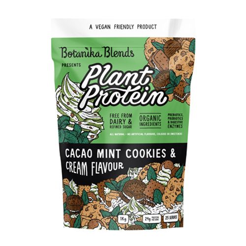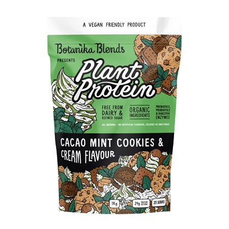 Botanika Blends Cacao Mint Cookies And Cream Plant Protein is for those who love a refreshing choc mint flavour with a creamy hint of cookie crumble!