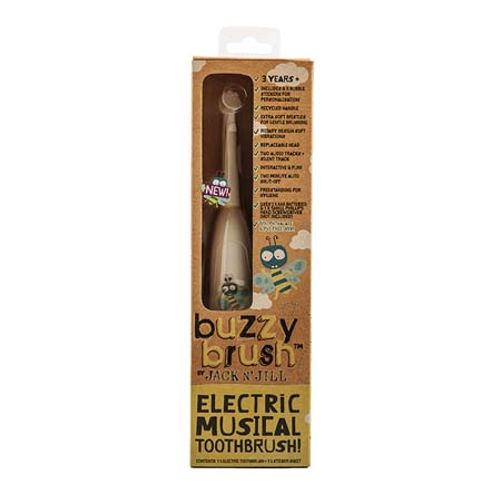 The battery operated, vibrating and musical Buzzy Brush Electric Toothbrush has all the features a kids electric toothbrush needs! A small, rotating brush head that is replaceable and an easy to grip and hold handle for little hands makes it easier for young kids to use the brush and reach small spaces in the back of their mouth. The recycled handle and extra soft bristles allow for gentle brushing.