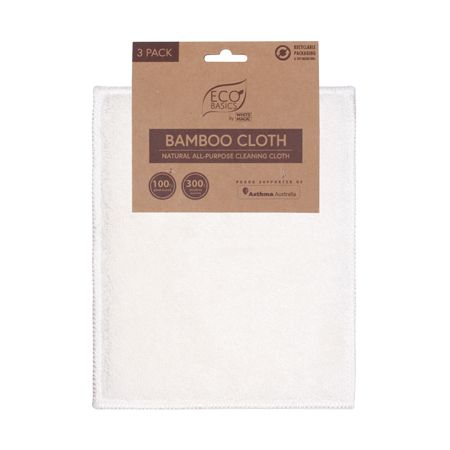 Introducing the Eco Basics Bamboo Cloth (3 Pack): A Sustainable, Reusable, and Highly Absorbent Cleaning Essential. The ultimate eco-friendly solution for your cleaning needs. Made from 100% plant-based materials, specifically bamboo fiber, these cloths are not only highly absorbent but also renewable, anti-bacterial, and resistant to odors and stains. Embrace sustainable cleaning practices with these biodegradable and reusable cloths.