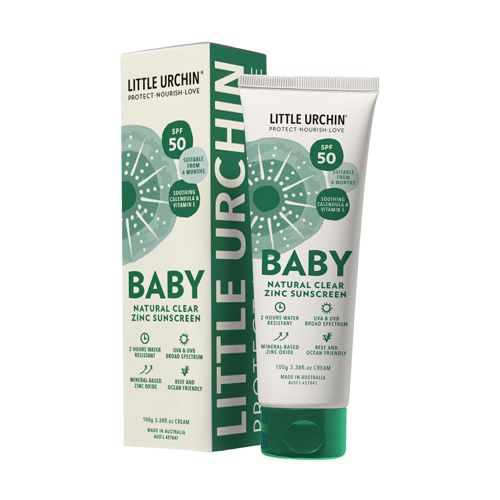 LITTLE URCHIN BABY Natural Clear Zinc Sunscreen SPF 50 is specifically formulated to protect and nourish even the most sensitive skin. Infused with the calming properties of Calendula and the antioxidant benefits of Vitamin E, this gentle Vegan sunscreen provides broad-spectrum UVA and UVB protection, keeping your babyÀs delicate skin protected under the sun. With its 2-hour water-resistant formula, itÀs perfect for short outdoor playtime. You can rest easy knowing whatÀs on your babyÀs skin is pure and natural. Made with Non-Nano Zinc Oxide as the only active ingredient, it contains no harsh chemicals, UV absorbers, parabens, synthetic preservatives, or fragrancesÀjust clean, gentle care thatÀs also kind to the planet. Designed for babies 6 months and older, this reef-safe sunscreen nurtures sensitive skin while protecting the environment. You can relax knowing you've provided your little one with the safest possible protection when exposed to the sun.