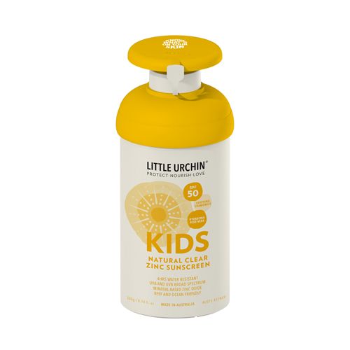 LITTLE URCHIN Natural Clear Zinc Sunscreen SPF 50+ (300ml) is your go to family size sun protection. This innovative Vegan formula offers high performance, Broad Spectrum UVA & UVB protection with 4 hours water resistance. Perfect for holidays, beach days and backyard fun itÀs gentle on sensitive skin and suitable for the whole family. More of what you love, in a convenient size built for sunny adventures.
