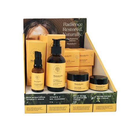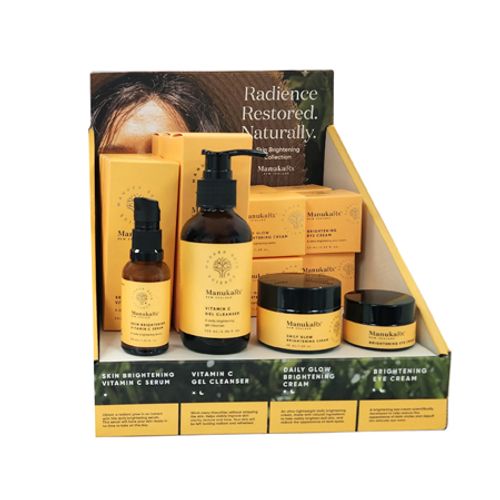 The Skin Brightening Collection CDU includes four units of each product listed below, plus one tester of each product.
