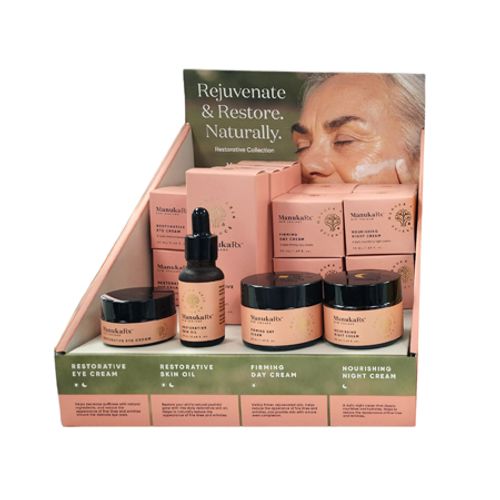 The Collagen Restore Collection CDU includes four units of each product listed below, plus one tester of each product.
