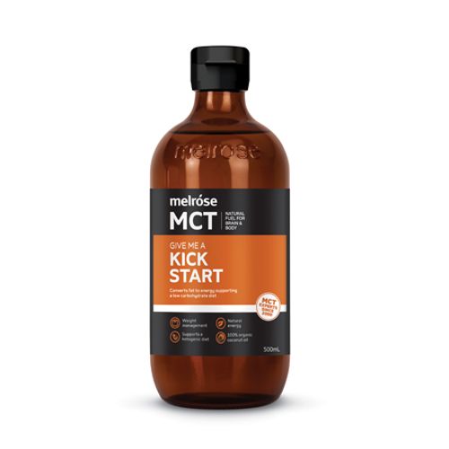 Our Kick Start MCT contains C8 and C10 medium chain triglycerides (MCTs), that are 100% derived from coconuts. Caprylic Acid (C8) is known to increase energy, boost ketone production, and assist in weight-loss. Capric Acid (C10) has similar actions to C8, though as it is a slightly longer chain, taking longer for the body to process it, sustaining the energy increase.