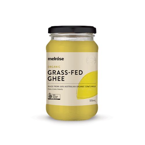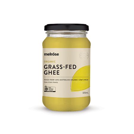 Melrose Organic Grass-fed Ghee (clarified butter) is made using the traditional method of simmering organic butter until the milk solids separate and then hand-filtered to remove any impurities. Made with milk from local Australian farms.