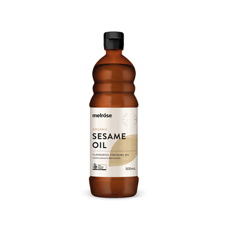 Melrose Organic Sesame Oil is pressed from raw sesame seeds giving it a lighter mild sesame flavour adding a subtle nuttiness to dishes (unlike dark sesame oil that is pressed after toasting the seeds and has a more intense sesame flavor).