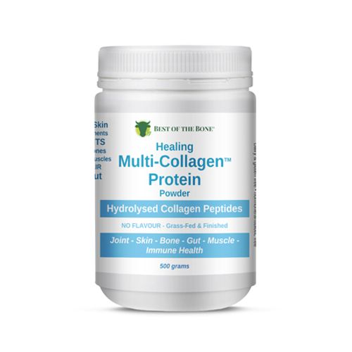 5 grams per day of hydrolyzed collagen will help support overall health. However, 10-20 grams per day of Best of the Bone collagen powder - will address inflammatory issues such as joint pain and gut health-related issues. You will notice radiant, more elastic skin quickly.