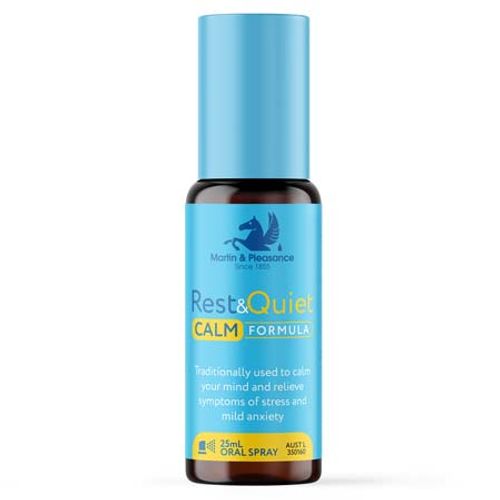 Rest&Quiet Calm formula is traditionally used to calm the mind and relieve symptoms of stress and mild anxiety. Suitable for day & night use to support our emotional and wellbeing needs. We all need to restore & manage our inner calm, when stress, mild anxiety, restlessness, irritability, over-stimulation and fear dominate our moment.
