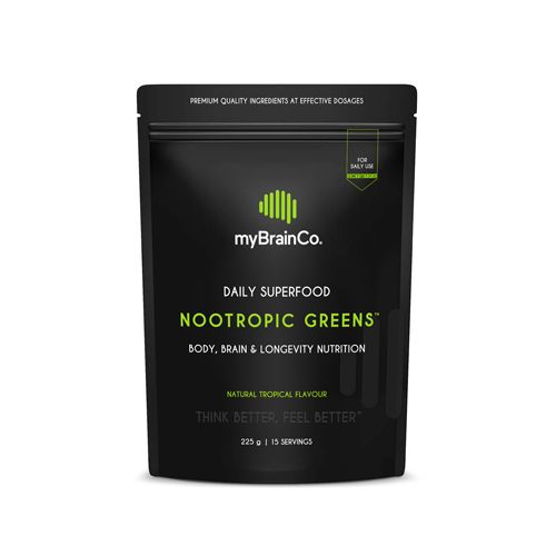 Nootropic Greens is a powerful daily nutritional blend that supports energy levels, immune function, cognition, and longevity. MyBrainCo's unique formula combines certified organic, nutrient-dense whole foods with top-tier nootropics and industry-leading longevity ingredients conveniently packed into a single daily serving.