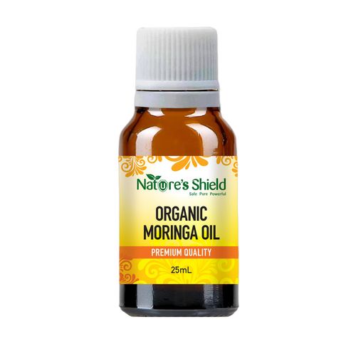Natures Shield Cold-Pressed USDA certified organic Moringa seed Oil is a superfine oil with a fresh green aroma. This nutrient rich oil can be used on its own for skin and cosmetic needs or blended with other ingredients for speciality beauty treatments .