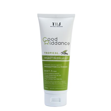 Good Riddance Tropical Insect Repellent is an effective natural bug repellent which provides long-lasting, tropical strength protection against mozzies, midges and sandflies that can carry harmful viruses such as Ross River and Dengue.