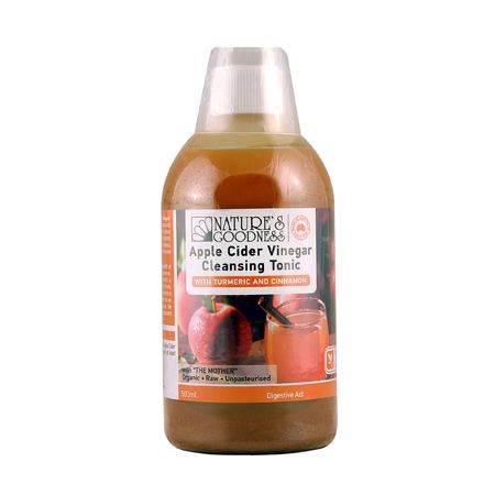 Nature's Goodness Apple Cider Vinegar Cleansing Tonic is made from organically produced cider. This unpasteurised product can be used as a digestive aid and probiotic due to the natural presence of proteins, enzymes and friendly bacteria otherwise known as the 'Mother'. This tonic also contains the added benefit of turmeric, a potent antioxidant, and cinnamon, which improves metabolism. As turmeric is poorly absorbed from the digestive system, we have added black pepper extract which is rich in piperine, a substance that acts as an absorption enhancer and can increase the bioavailability of curcumin, a key component of turmeric, by up to 2000%.