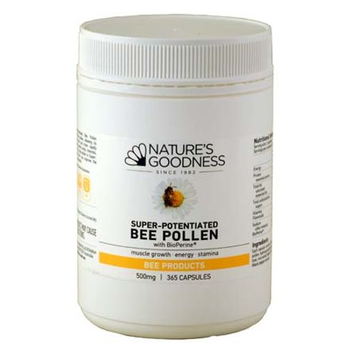 Nature's Goodness Super-Potentiated Bee Pollen capsules contain micronized bee pollen, allowing its nutritional contents to be better and more rapidly absorbed. It is a rich source of amino acids, minerals, enzymes and phytonutrients. This bee pollen is Super-Potentiated with BioPerine® which can improve the bioavailability of nutritional compounds.