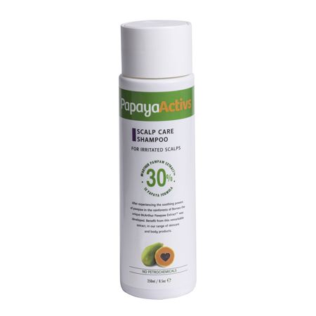 PapayaActivs Scalp Care Shampoo has been created to keep hair and the scalp healthy. Containing a 30% concentration of Pawpaw Extract, Scalp Care Shampoo is specially formulated for use on sensitive, dry, flaky and itchy scalps. Packed full of antioxidants, this soothing shampoo uses the special qualities of Pawpaw (Papaya, Papaw) to gently clean hair and exfoliate the scalp, reducing flakiness and providing beautiful, healthy looking hair. No fragrance has been added so it is suitable for the most delicate scalp.