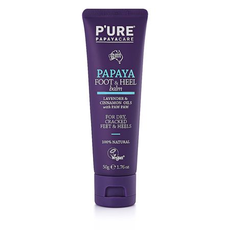 P'ure Papayacare's vegan and cruelty-free foot and heel balm help moisturise dry, cracked or rough skin. Made from 100% natural ingredients such as Papaya, Shea Butter, Lavender Oil and Cinnamon Oil to nourish damaged skin. The essential oils are known for their anti-fungal properties.