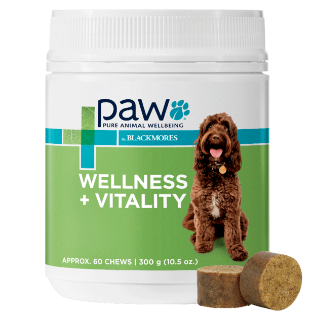 PAW Wellness + Vitality Multivitamin Chews are highly palatable low fat kangaroo based chews with alkalising ingredients to maintain general wellness & vitality.