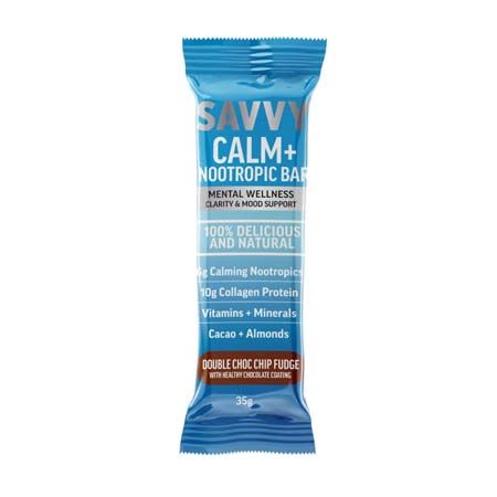 CALM+ Nootropic Bars are made with real foods, like organic peanuts, peanut butter, collagen, pea fibre, vitamins, minerals and nootropics to help with keeping you calm and mentally clear.