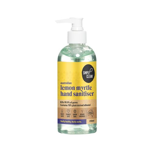 SimplyClean use only the best and essential ingredients to leave hands germ free and fresh. This Lemon Myrtle Hand Sanitiser combines the germ-killing power of 70% pure ethanol with the natural antibacterial properties and beautiful scent of pure Australian lemon myrtle essential oil.