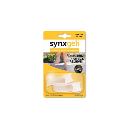 The Synxgeli Tailor's Bunion Shield can cushion, protect and relieve soft tissue and the fourth & fifth toe joint from unwanted stress, providing optimal comfort and pain relief.