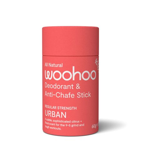 Woohoo original award-winning scent, Urban, is a crowd favourite with its sophisticated yet subtle floral and vanilla aroma and gentle pH-adjusted formula. It's a barely-there scent that you can count on to get the job done in style, protecting you from body odour and chafe without missing a beat.