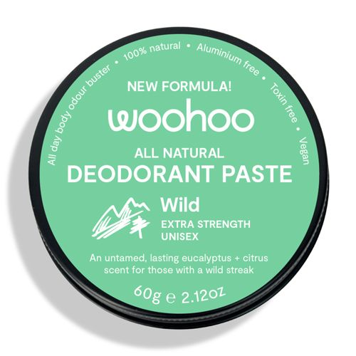 Woohoo Wild is your extra-strength natural deodorant paste for all-day freshness, even under pressure. With a zesty lemon myrtle and eucalyptus scent, it's unisex, 100% natural, and made to keep up with your wild side  no matter what your day throws at you.