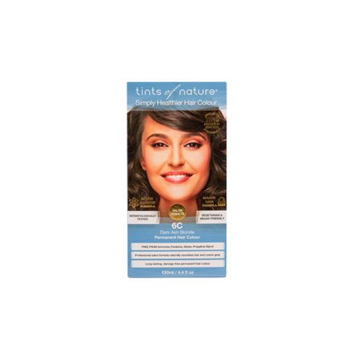 Rediscover happier, healthier hair with Tints of Nature 6C Dark Ash Blonde patented permanent hair dye for an ash blonde that is naturally cool and super shiny.