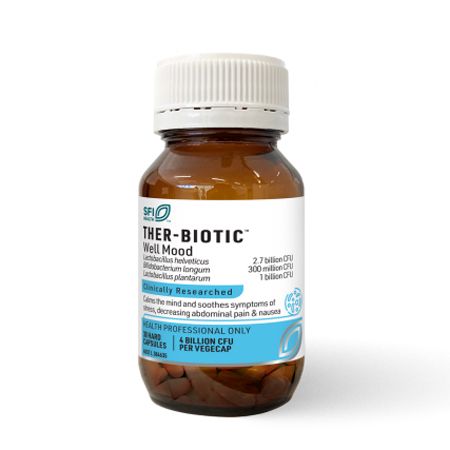 THER-BIOTIC Well Mood (previously Flordis Well Mood) is an evidence-based probiotic formula clinically researched to support healthy mood. It contains a combination of three specific probiotic strains shown to help reduce the symptoms of mild anxiety while maintaining healthy emotional balance.