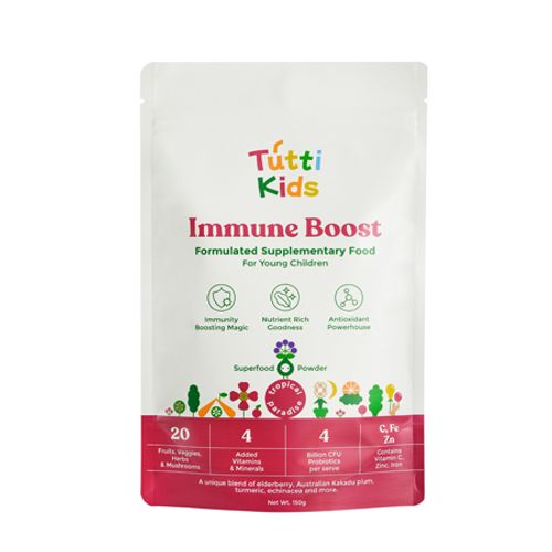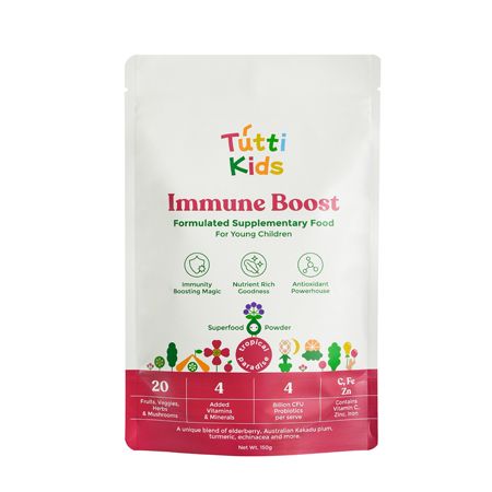 Immune Support - Packed with fruits, veggies, mushrooms & herbs such as kakadu plum and echinacea. Added Vitamin C, D, Zinc & Iron, these ingredients contribute to strengthening your child's immunity