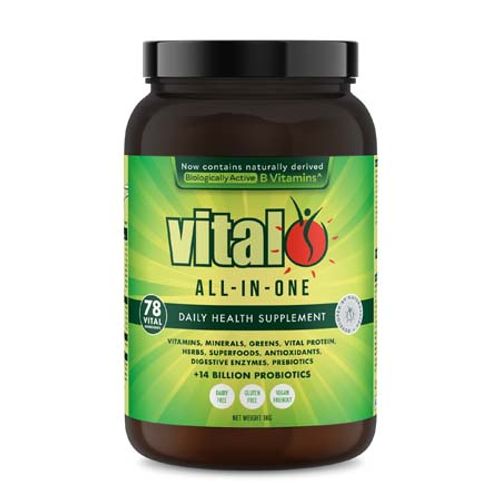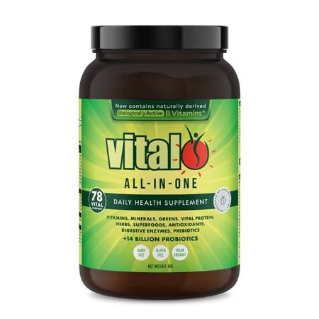 The Vital All-In-One formula is an easily absorbed, carefully balanced powder blend of essential nutrients that have been extracted from natural dense vegetables and fruits plus the addition of probiotics, herbs, vitamins and minerals.