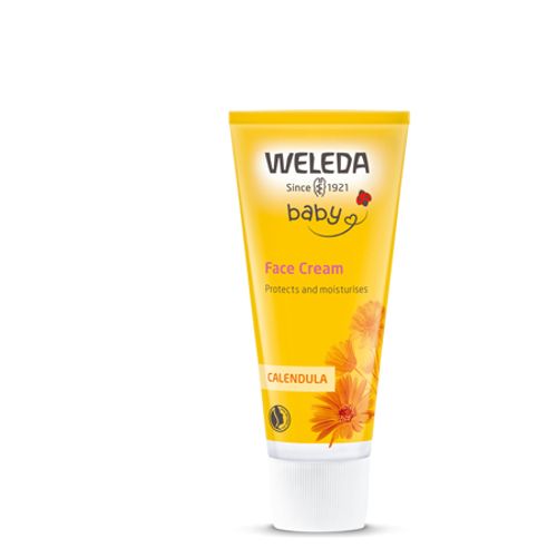 There's a lot of learning when baby first faces the world - and baby skin is developing too. Five times thinner than grown-up skin, and much more prone to moisture loss, baby skin needs natural help. Organic calendula extract wraps its protective mantle around tender facial skin, while skin-friendly lanolin and organic almond oil moisturise. Easy to use on the face and quickly absorbed. Mums and midwives trust Weleda to bring the harmony of nature to babycare.