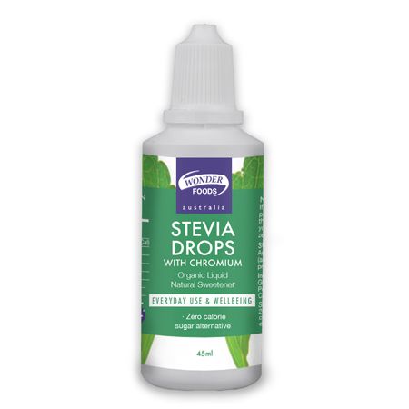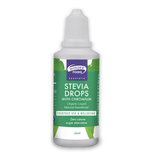 Wonderfoods stevia drops with chromium is an excellent alternative to sugar, and is described as the sweetest supplement on earth. It is 100-300 times sweeter than sugar and contains no calories, making this a great choice for those wanting to decrease their daily calorie intake. Stevia does not produce a glycaemic response like sugar does, making this a fantastic choice for those limiting their sugar intake. Wonderfoods stevia drops also contain chromium which is an essential trace element. Stevia (Steviol Glycosides) is derived from the leaves of the stevia Rebaudiana plant, making this all natural supplement a great healthy choice. This quality, high grade Stevia has no bitter, unpleasant after taste.