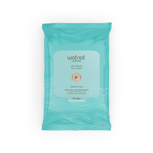 Wotnot's face wipes for sensitive skin are enriched with all-natural ingredients, including certified organic aloe vera to lubricate and repair, certified organic sweet almond oil to restore lost moisture and calm itch and inflammation & certified organic rosehip oil for skin regeneration and moisture re-balancing. Your skin is left feeling clean, fresh, and supple; not dry or irritated.